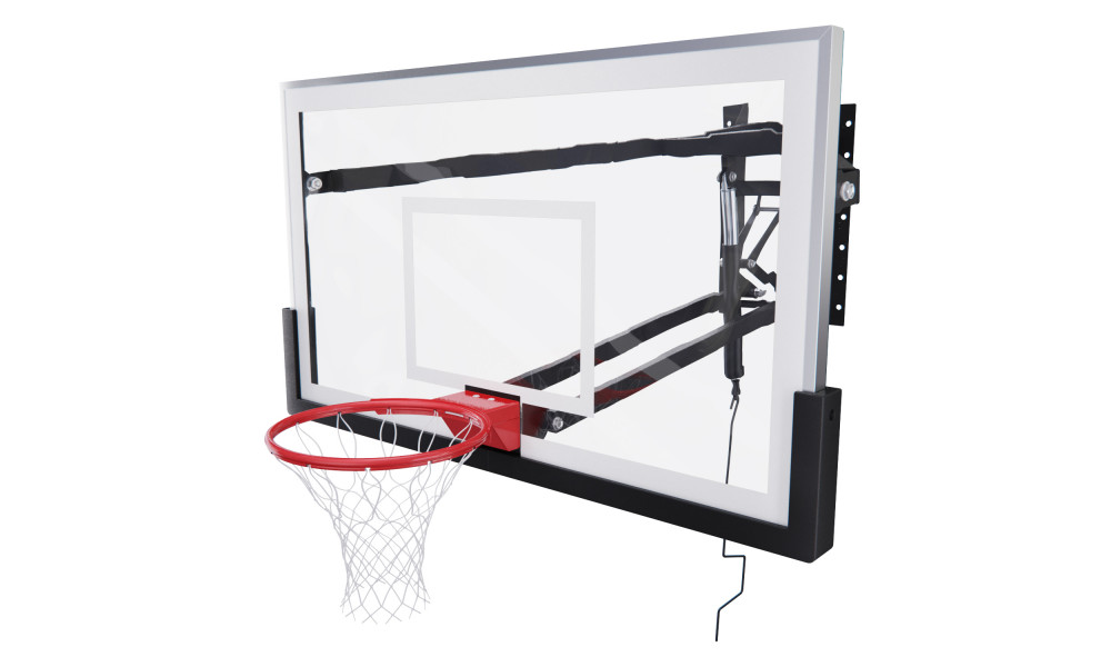 Щит изготовлен из прочного закалённого стекла толщиной 12 мм — материала, обеспечивающего отличный отскок мяча и устойчивость к ударам. Его размеры — 180 х 105 см, что делает его максимально приближенным к профессиональному оборудованию. Регулируемый вынос щита (98-116 см) повышает безопасность и удобство во время игры. Дополнительную безопасность обеспечивает защита Poly Pade, установленная по нижнему краю щита.