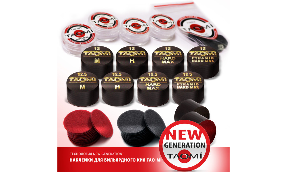 - TAO-MI NEW GENERATION адаптируются к индивидуальному стилю игры, идеально держат мел и дают лучшее сцепление с шаром, больше вращения и управления.